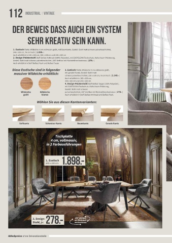 Diese Esstische sind in folgender 3. Esstisch Platte: Wildeiche 4 cm vollmassiv geölt, 3. Esstisch 2.148. - 2 Farbausführungen