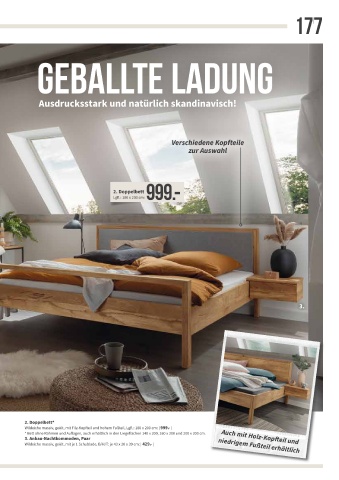 B/H/T: 268 x 221 x 65 cm: | 4.119.- | * Bett ohne Rahmen und Auflagen, auch erhältlich in den Liegeflächen 140 x 200, 160 x 200 und 200 x 200 cm. Auch mit Holz-Kopfteil und