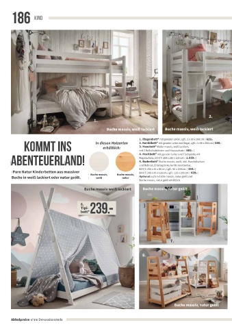bett* 6. Tipibett* Buche massiv, weiß lackiert, 9. Kinderregal Buche massiv, natur geölt, mit 3 Ablageböden und seitlichem Bücherregal